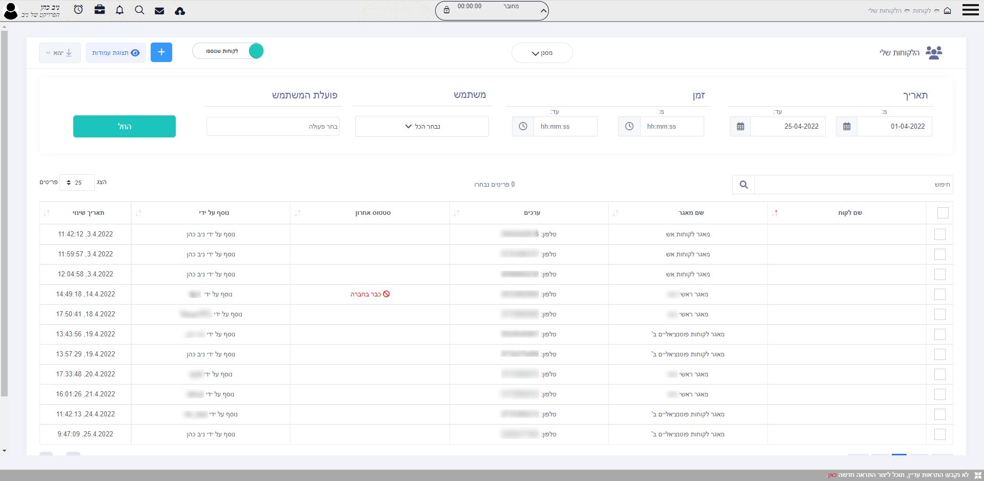 | 10:01, 25 באפריל 2022 | הלקוחות שלי - טעינת פרטי לקוח.png (קובץ) | 272 קילו־בייטים | ניב | 1 | ||